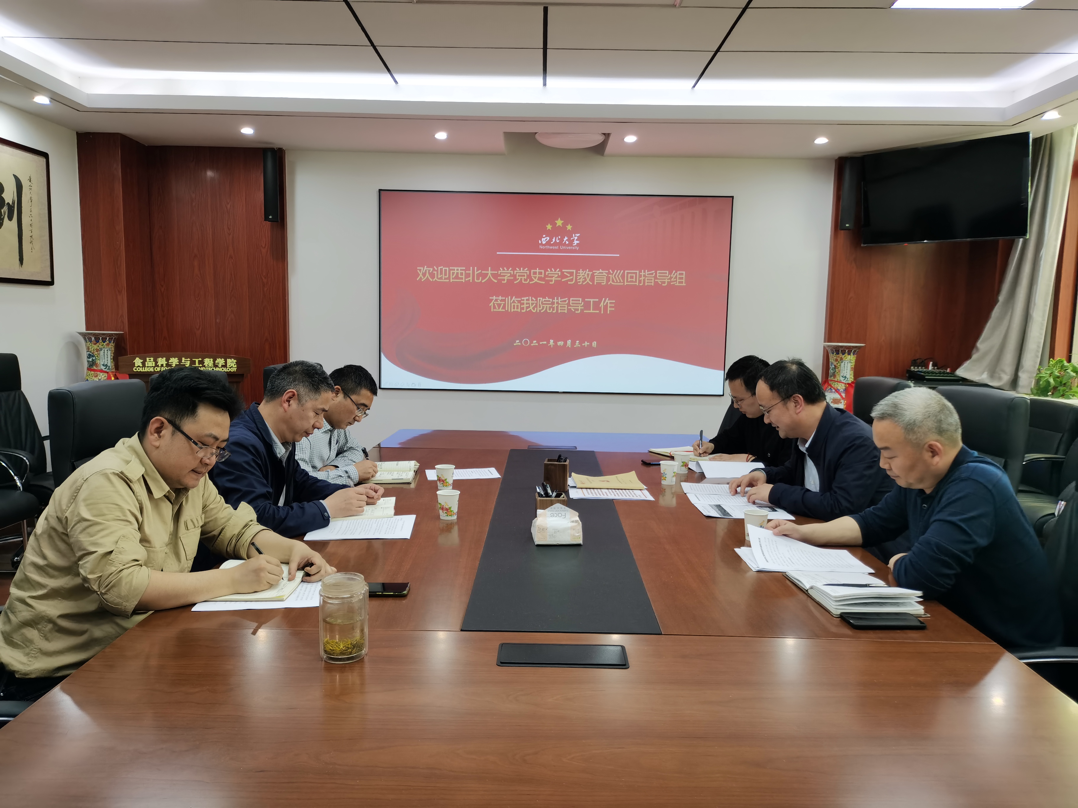 4月30日下午,学校党史学习教育巡回指导组第四组组长、研究生工作部部长李军、校纪委委员、保卫处长雷林刚、联络员朱紫瑞一行来红足官网检查指导党史学习教育工作,学院党政班子成员参加了会议。