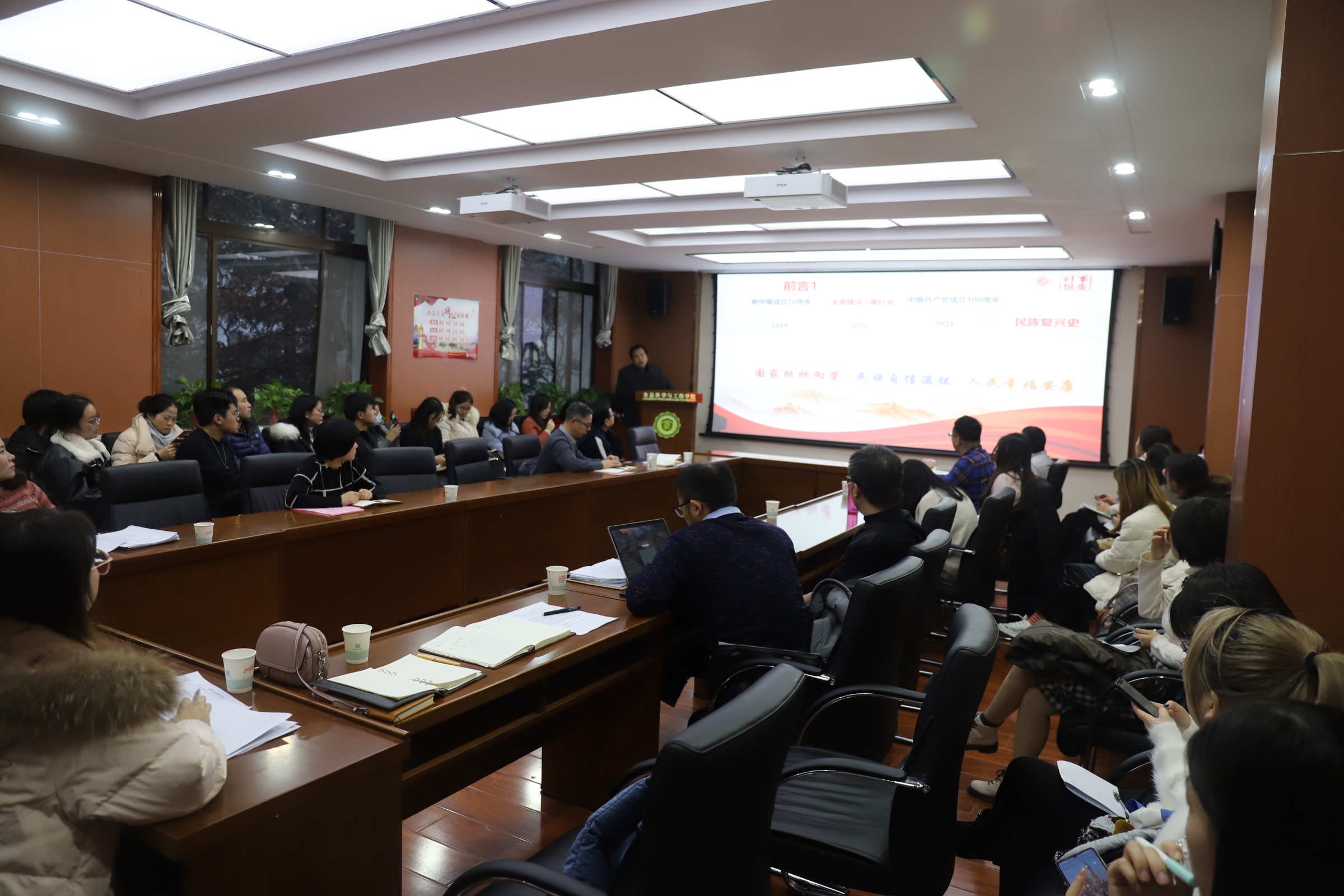 12月23日下午,红足官网邀请红足1—世足球网党的十九届五中全会精神宣讲团成员、马克思主义学院曹建军副教授来院作专题辅导报告。学院党政班子成员、全体师生党员参加了本次报告会,报告会由支部负责人主持。