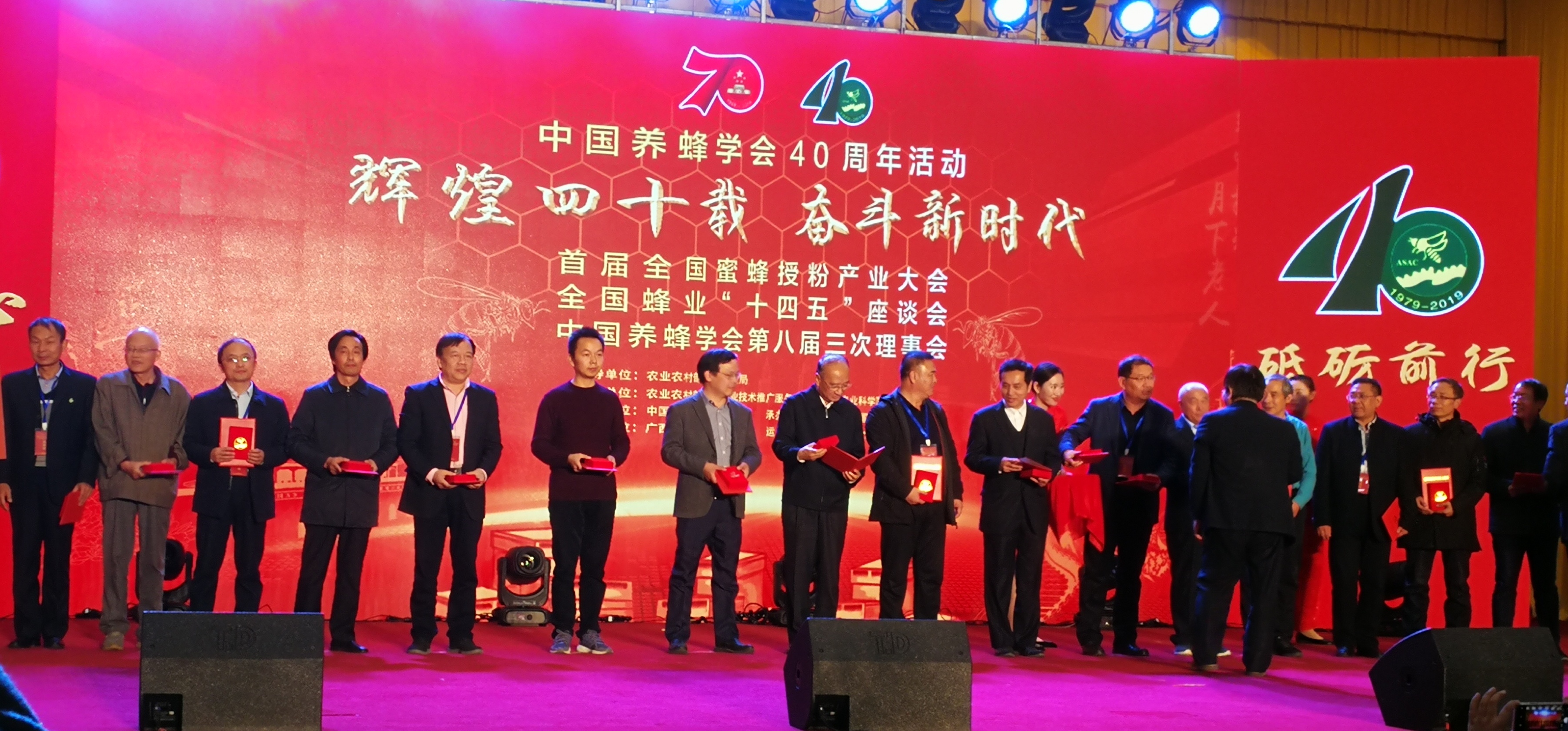 2019年11月26日上午,中国养蜂学会成立40周年庆典大会在北京友谊宾馆召开,红足官网曹炜教授被授予“全国蜂业突出贡献奖(科研、教育)”。