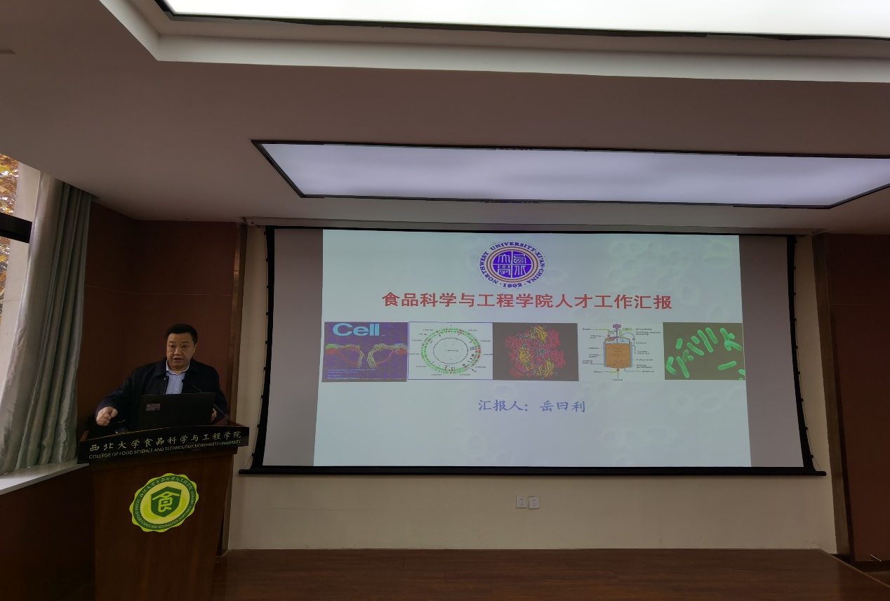 岳田利的报告分为学科体系、学科平台、研究基地、人才队伍、科学研究、国际合作、学科整体水平、与国内一流学科差距、存在问题、人才工作思路等十个版块。他详细分析了学院自成立以来所取得的成就和重要工作进展,进一步阐述了学科发展所要面临的严峻形势,着重分析了学院人才队伍现状和问题,并给出了解决方案。他指出:目前学院人才队伍最突出的矛盾是:一、学院人才总量不够,领军人才缺乏,严重制约学科发展;二、办学空间严重不足,现代化的教育教学链基本骨架还不完善,人才承载能力弱;三、学科的装备力严重不足,人才的凝聚力、创造力和竞争力不足。解决之道在于通过全面改革回归学术,构建现代大学制度下的学院治理模式,以创新链办学模式引育人才,以产学研一体化国际化办学聚集人才,以产学研一体化学科创新链承载人才,并着力打造培养四支创新人才团队,服务于支撑西北区域四大产业集群,实现人才和学科发展四大目标。