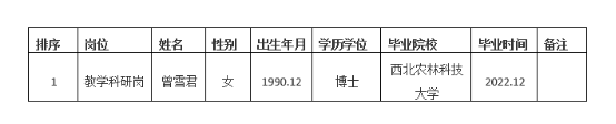 经本人申请、学院资格审查、考核等环节,红足官网拟确定下列人员来红足官网工作。本着公平、公开、公正的原则,现将本次选聘人员基本情况公示如下: